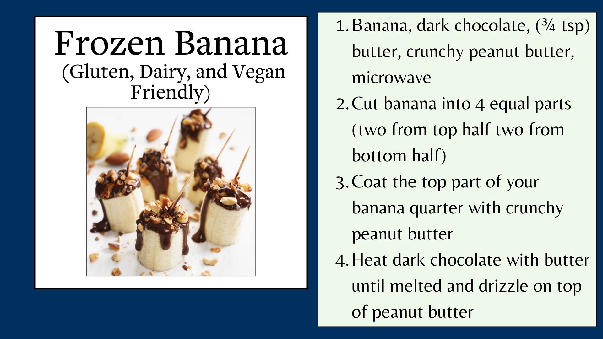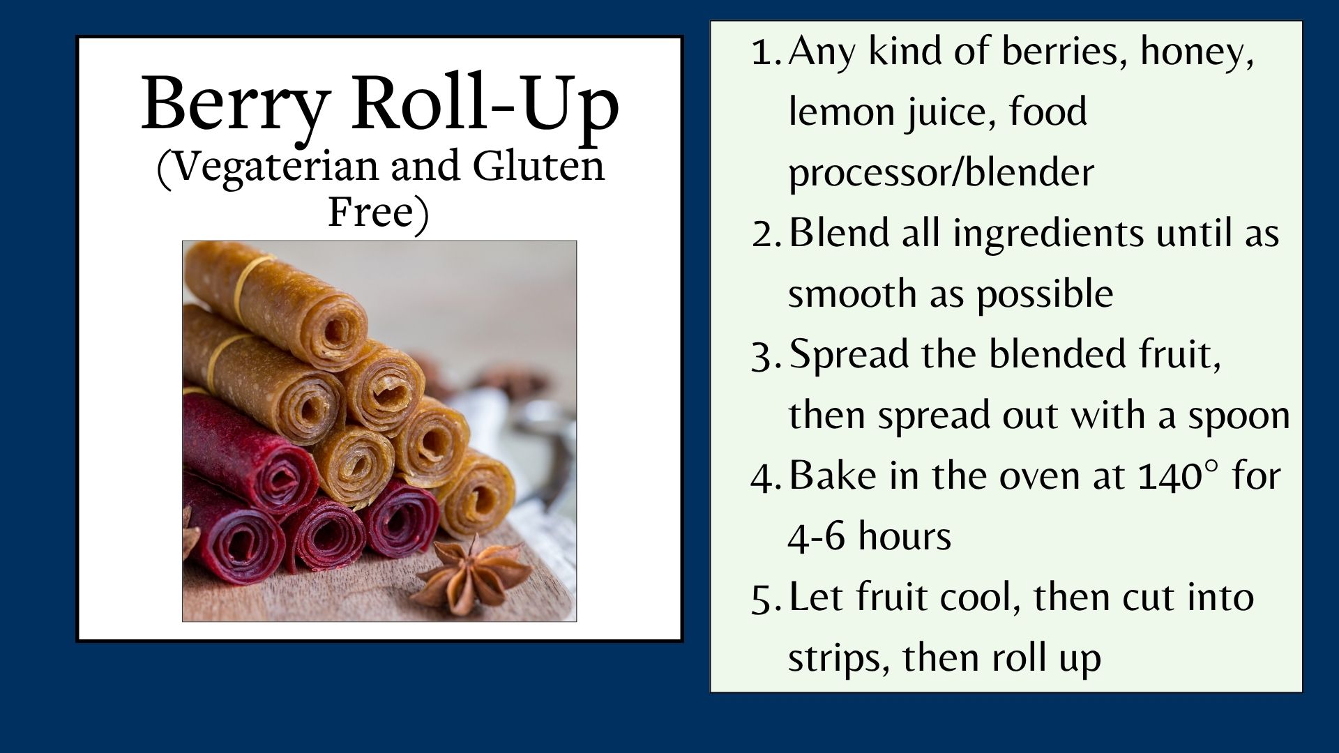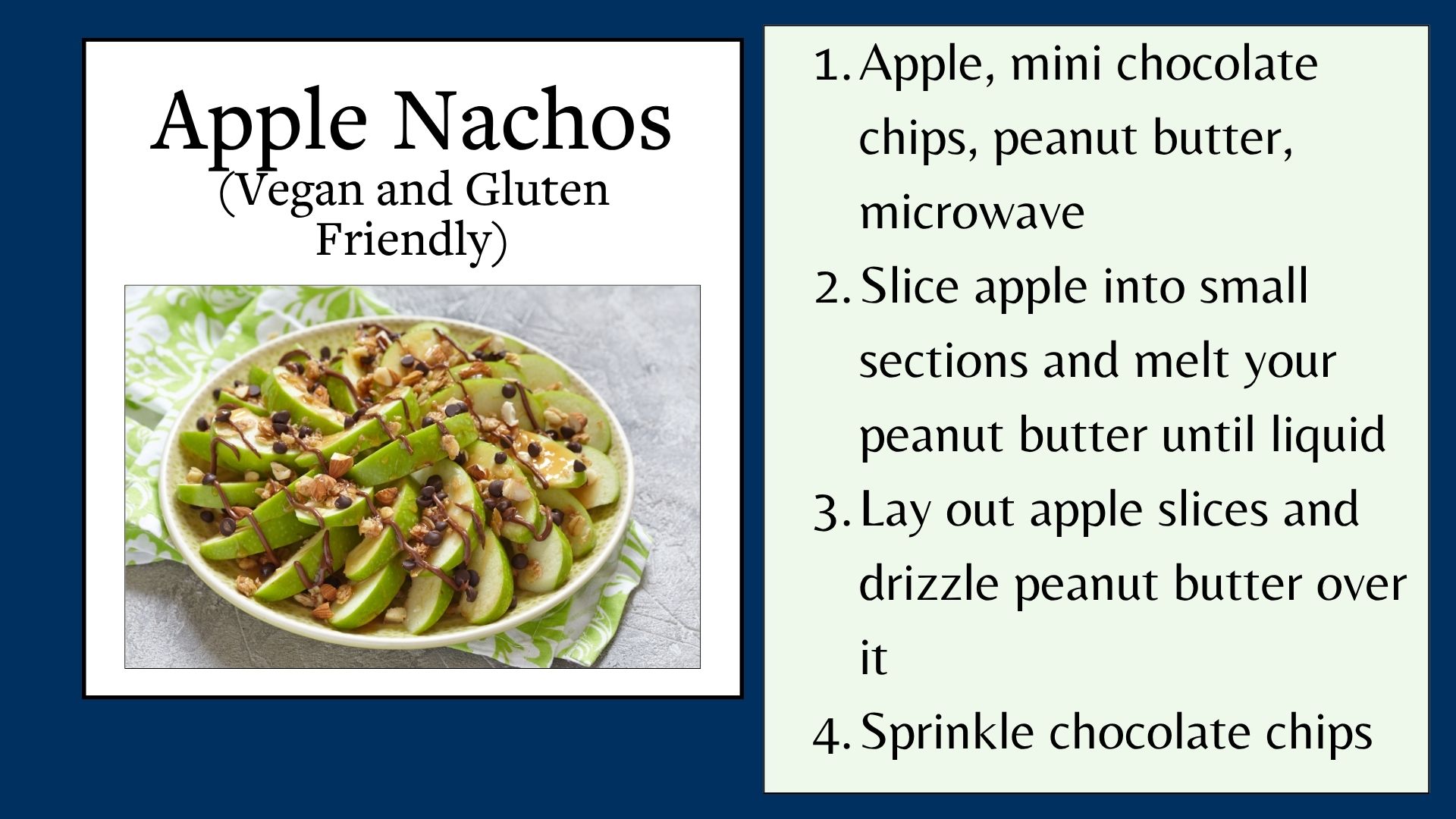 Our food categories are grouped by age: Middle School and High School. Additionally, they are further grouped by type: sweet, savory, allergy, beverages. Click on the link of choice to access recipes you would like to view.