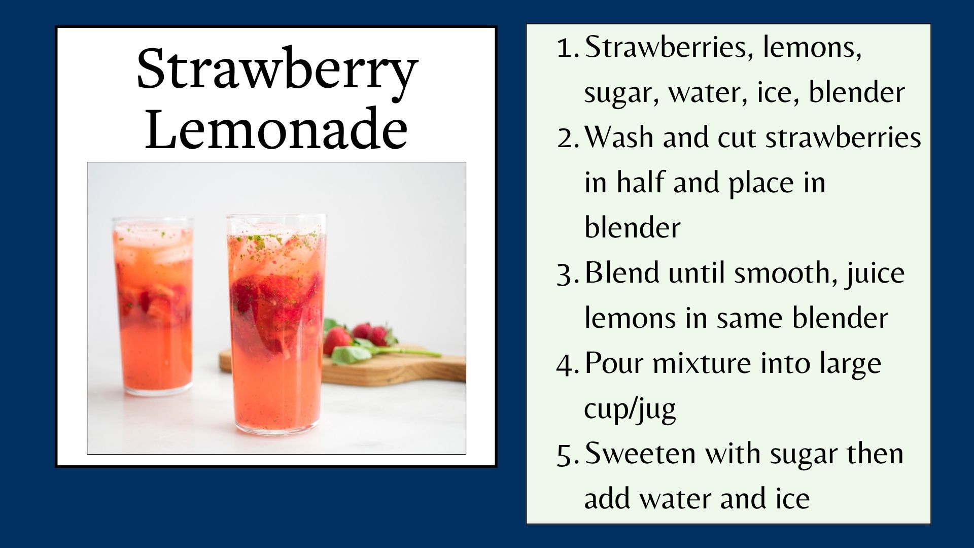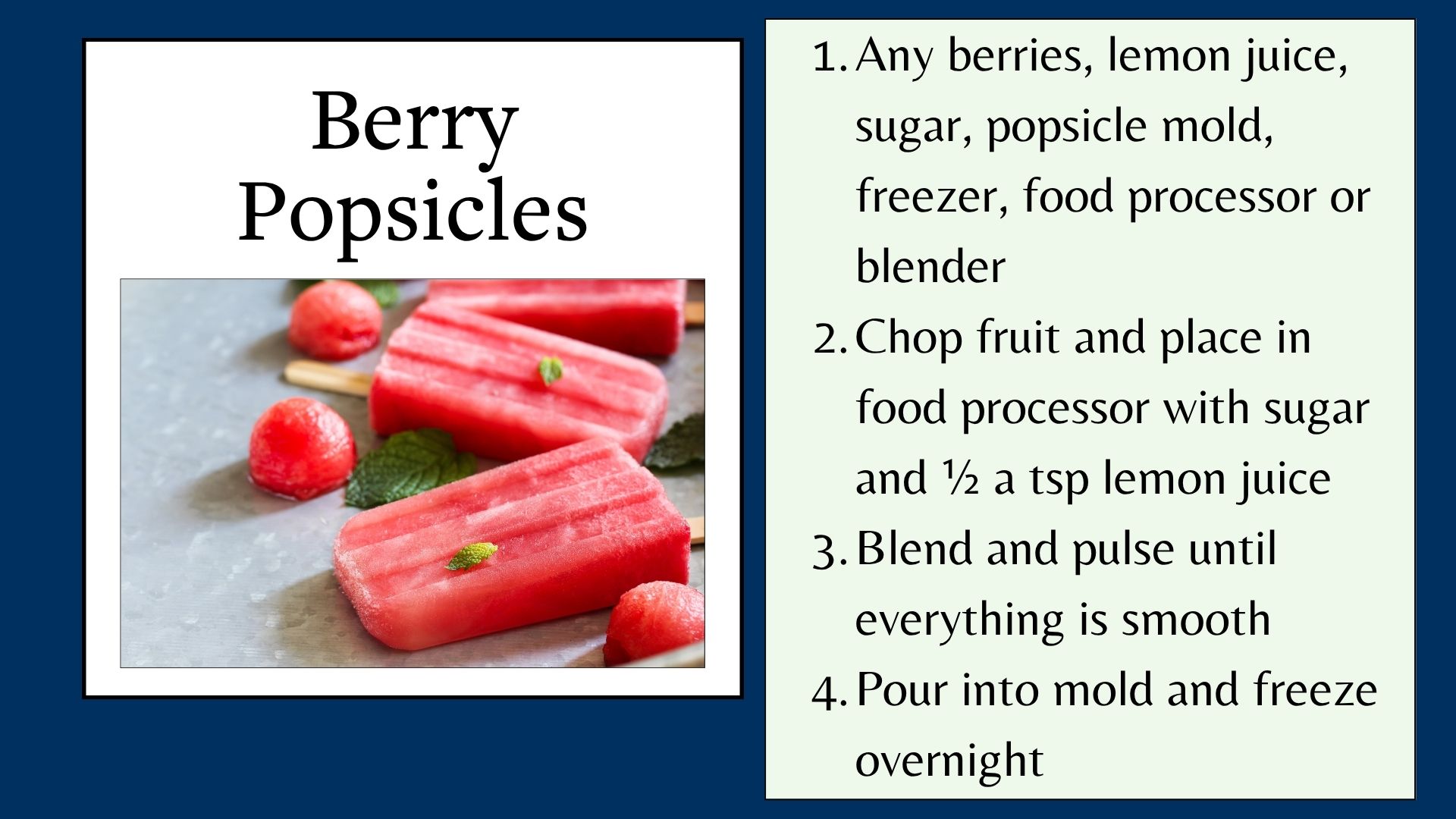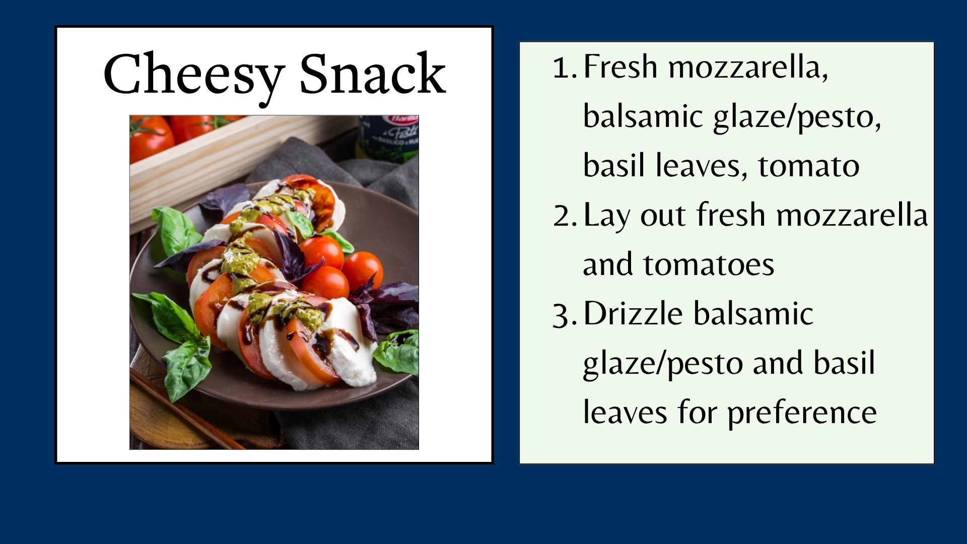 Our food categories are grouped by age: Middle School and High School. Additionally, they are further grouped by type: sweet, savory, allergy, beverages. Click on the link of choice to access recipes you would like to view.
